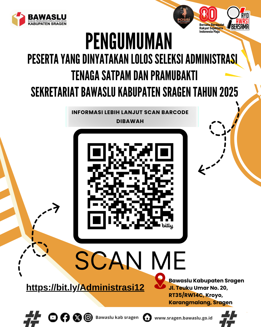 Peserta yang dinyatakan lolos seleksi administrasi tenaga satpam dan pramubakti sekretariat bawaslu kabupaten sragen tahun 2025